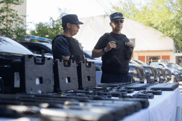 Mercedes Rus además brindó detalles de las armas que se presentaron en esta oportunidad. “Son 42 armas largas, que son las que usan los grupos especiales y también Infantería”. Asimismo, señaló que se presentaron “armas de las clásicas 9 milímetros, que son 650 que vienen a reforzar, sobre todo teniendo en cuenta los nuevos nombramientos que se vienen”.