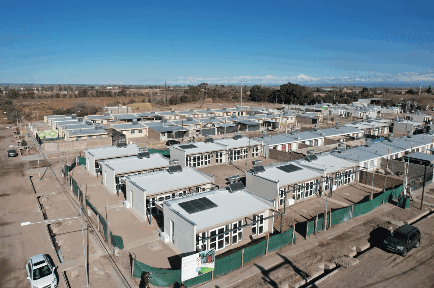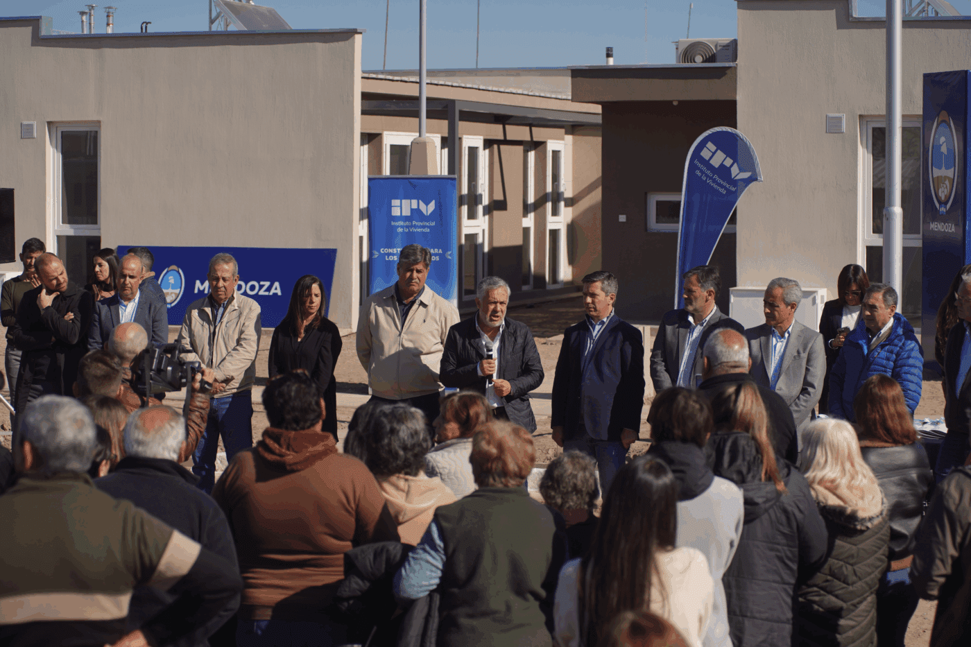 El Gobernador Alfredo Cornejo encabezó en Junín la entrega de 16 viviendas del barrio Aguaribay, un proyecto innovador desarrollado en el marco del Proyecto GEF – Eficiencia Energética y Energías Renovables en la Vivienda Social Argentina, con financiamiento inicial del Banco Interamericano de Desarrollo (BID).