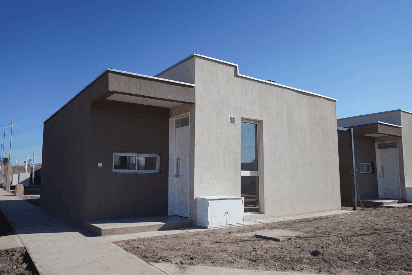 Las casas fueron construidas por la empresa Cebeco SA con una inversión total de $ 687,7 millones, de los cuales $ 42,9 millones fueron aportados por la Provincia para finalizar la obra tras el recorte de fondos nacionales.