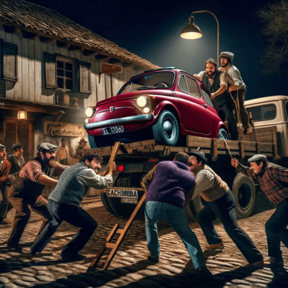 En un momento de la noche y quizás para cambiar su suerte en la baraja, el padre Constantino se levantó de la mesa y se fue para el fondo del club, como yendo para el baño. Sus compañeros de juego inmediatamente planearon la broma: cargar el Fiat 600 del cura en el camión del Cachimba. El Buche, el Tito, el Alberto, el Buby, el Aldo y también quien recordó esta historia, que aquí sólo mencionaremos como el Memorioso, salieron a la calle.