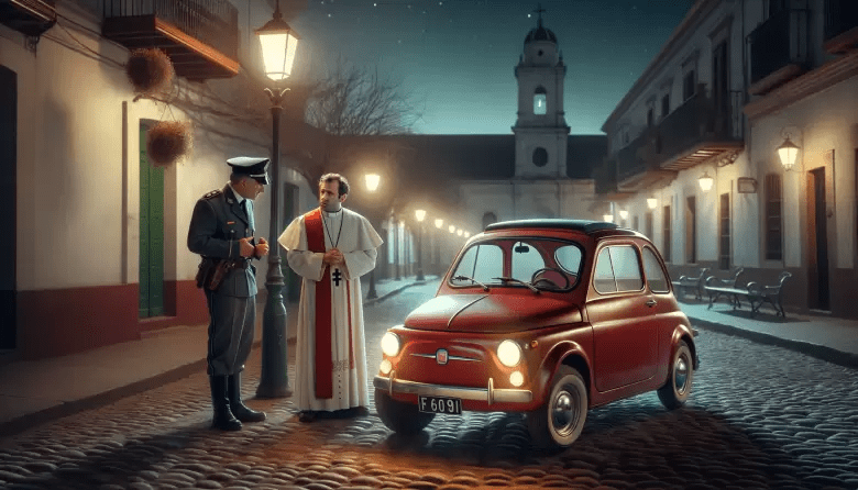 Apenas caminó unos metros vio que su auto no estaba donde lo había dejado. Desde una de las ventanas del club los cómplices comenzaban a reírse y vieron como el sacerdote comenzaba a mirar para todos lados buscando el 600. Incluso llegó a caminar hasta el auto del Negro García, sólo para comprobar que ese auto se parecía mucho al suyo, pero no era.