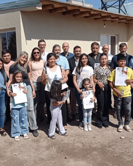 El Intendente, Fernando Ubieta, junto al Director del Instituto Provincial de Vivienda (IPV), Gustavo Cantero, entregaron siete soluciones habitacionales a familias paceñas que desde hoy cuentan con una vivienda propia en el Barrio Unión y Progreso 3.