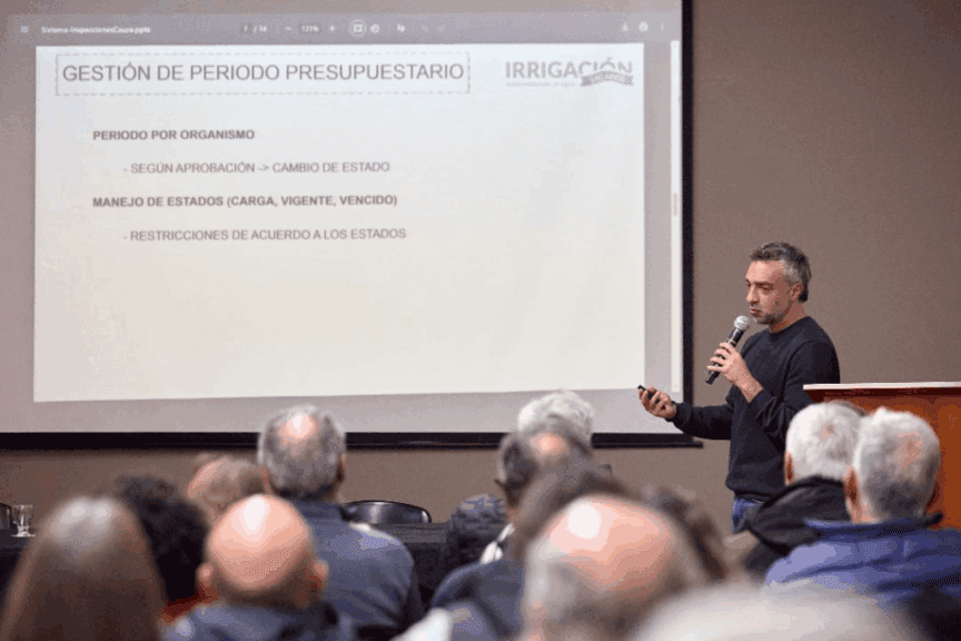 En la sede central del Departamento General de Irrigación se realizó una reunión-taller para presentar el desarrollo de un nuevo sistema contable, dirigido a Inspectores de Cauce, contadores y gerentes técnicos de estos entes.