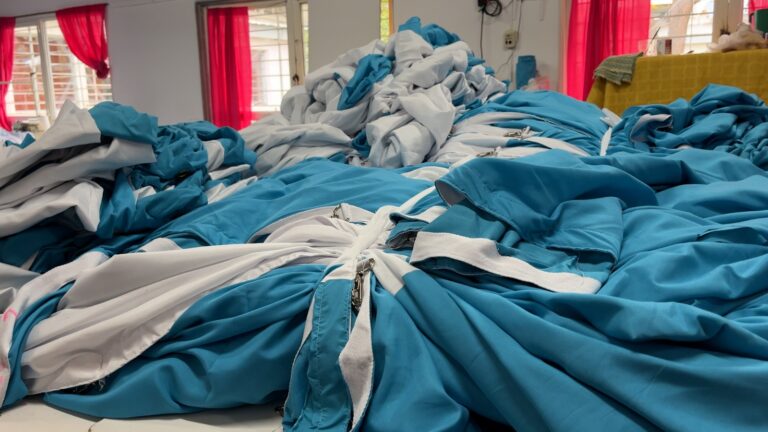 La bandera, considerada la más grande del país en su tipo —instalada sobre los techos de avenidas— es el resultado de una articulación precisa entre el Ejecutivo departamental, liderado por el intendente Alejandro Molero, y el esfuerzo silencioso pero determinante de mujeres que convirtieron el trabajo textil en una ofrenda patriótica. En total, se utilizaron más de 2.100 metros lineales de tela y se realizaron entre 7.000 y 8.000 metros de costuras, para una bandera de 700 metros por 7 metros de ancho, según estimaciones de Alicia Morales, responsable del taller del CIC.