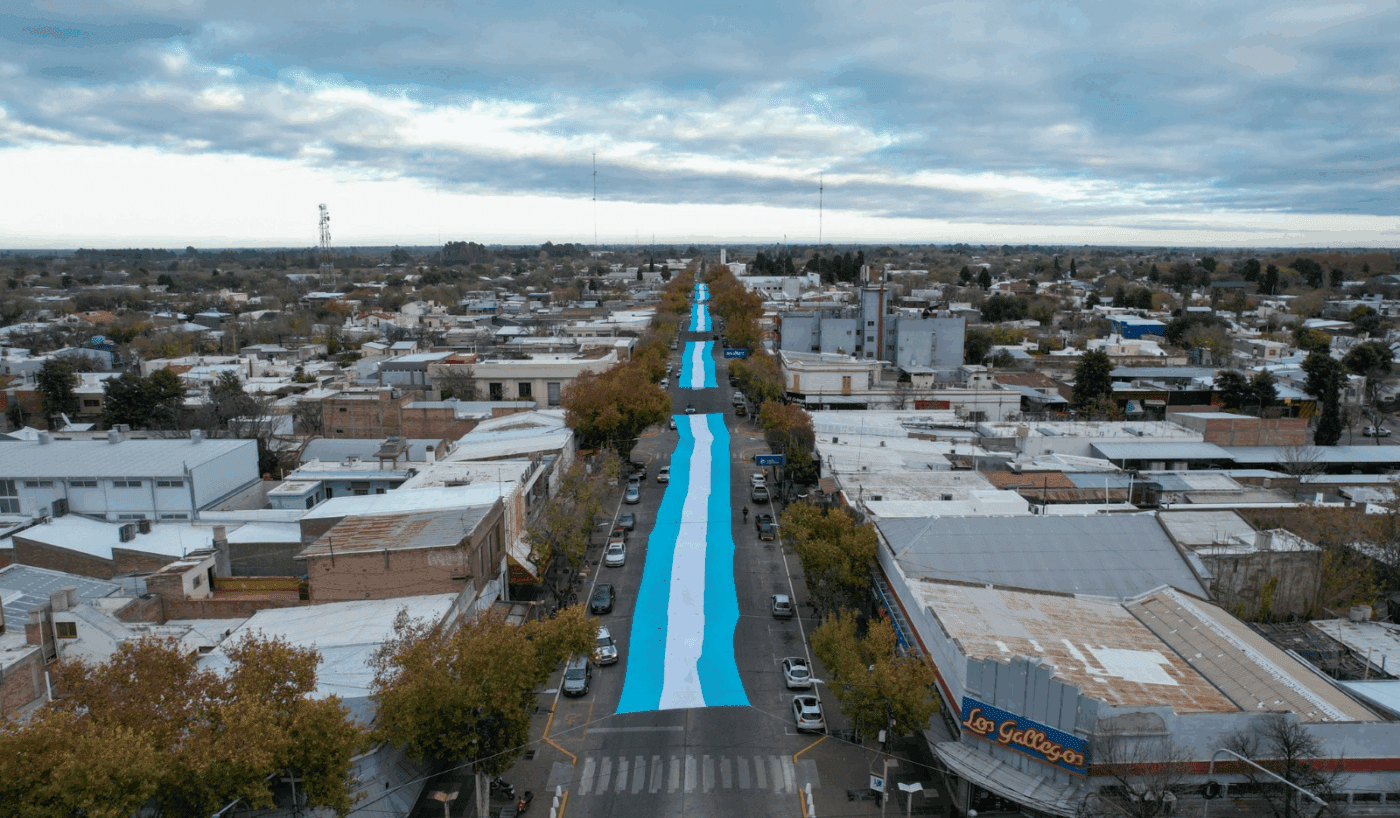 En el marco de los festejos por el 25 de Mayo, General Alvear volvió a confirmar su vocación de liderazgo y compromiso con las grandes gestas colectivas. Sobre la avenida Alvear Oeste, arteria central del departamento, se desplegó una bandera argentina de proporciones históricas.